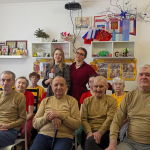 Тем временем, в общей комнате, дамы пансионата заняты не менее важным делом. Они с любовью и заботой готовят милые, символические подарки с любимыми сладостями в виде нарядной рубашки для наших дорогих мужчин.