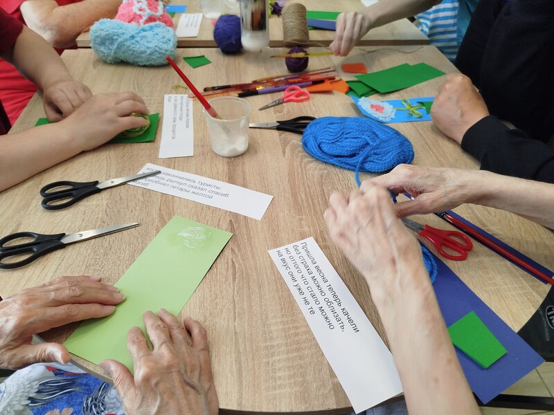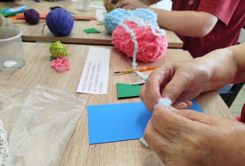 Мелкая моторика пальцев, столь важная для поддержания ловкости и координации, получила прекрасную тренировку в процессе работы с нитками. Перебирая разноцветные клубки, выбирая нужные оттенки, наши постояльцы не только создавали красоту, но и активизировали мозговую деятельность, улучшали концентрацию внимания.