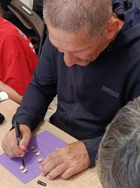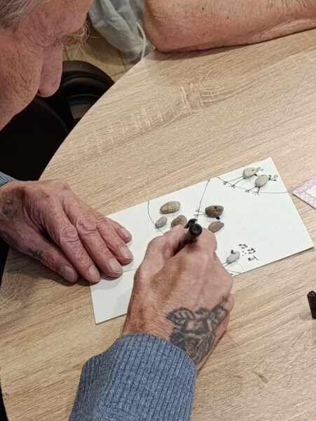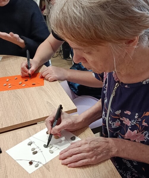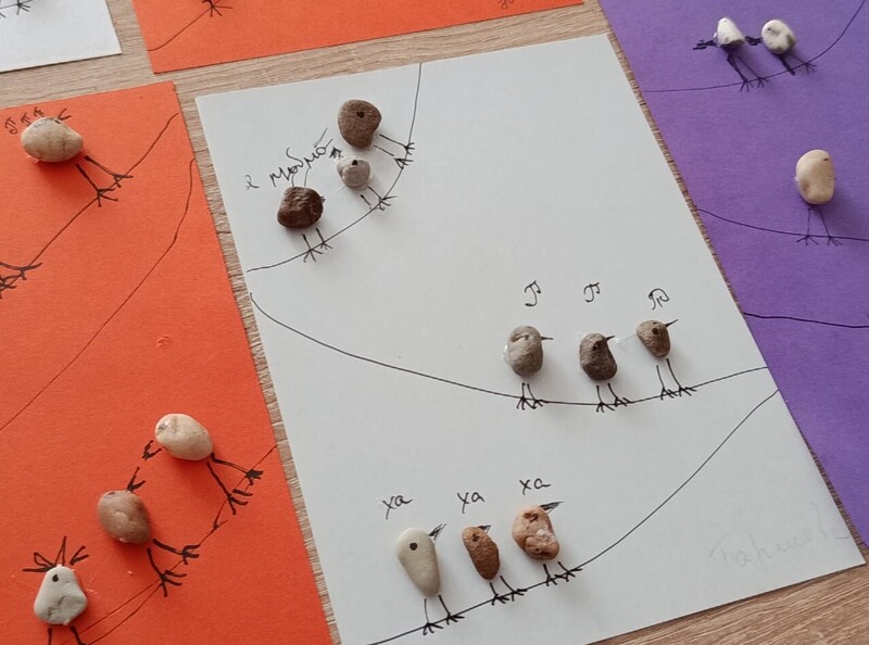 Вот такую юморную композицию из мелкой гальки мы сделали на наших занятиях! Фантазии нет предела, и мы этим пользуемся.