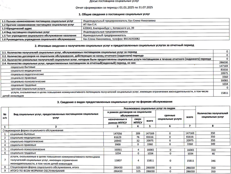 Отчет о предоставленных услугах за первое полугодие 2025 год.