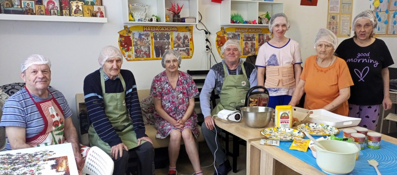 С самого утра мы собрались вместе, чтобы открыть масленичную неделю свежей выпечкой собственного приготовления. В этот раз нам захотелось сладких песочных орешков с вареной сгущенкой как в детстве. По завершении выпечки наши «пекари» с удовольствием угостили постояльцев пансионата, а затем сами устроили чаепитие.