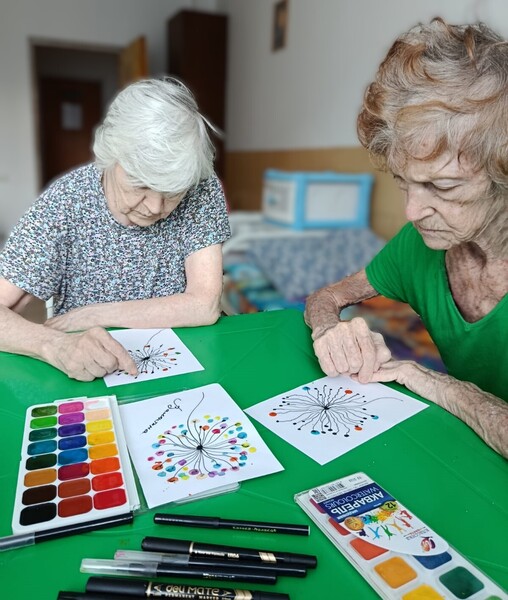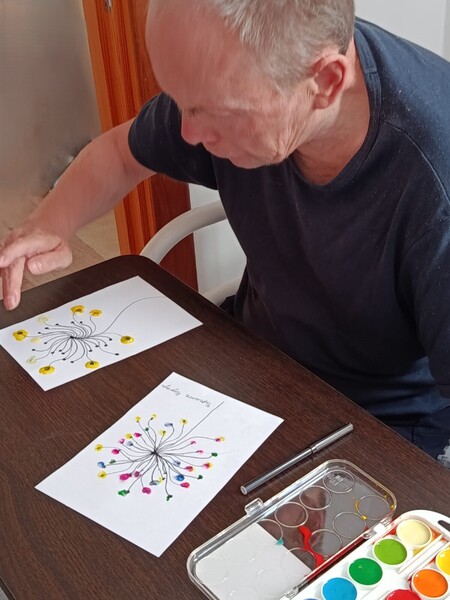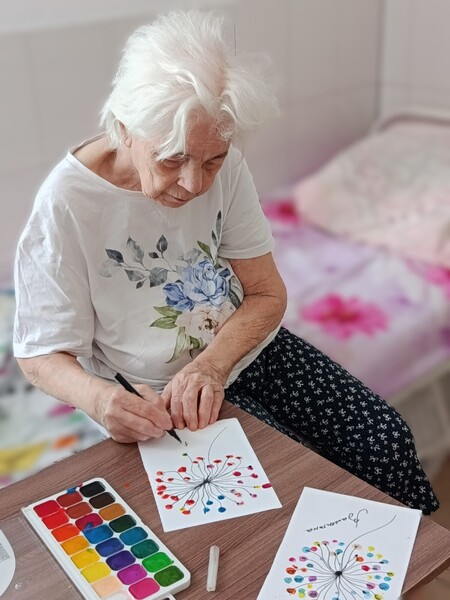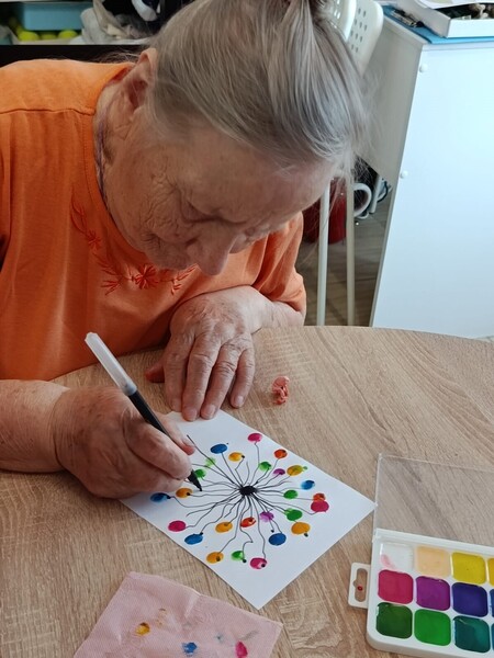 Наши постояльцы уже знакомы с техникой пальчикового рисования, и на этот раз мы рисовали яркие одуванчики. Продолжаем активно развивать воображение и избавляемся от тревог и стрессов!